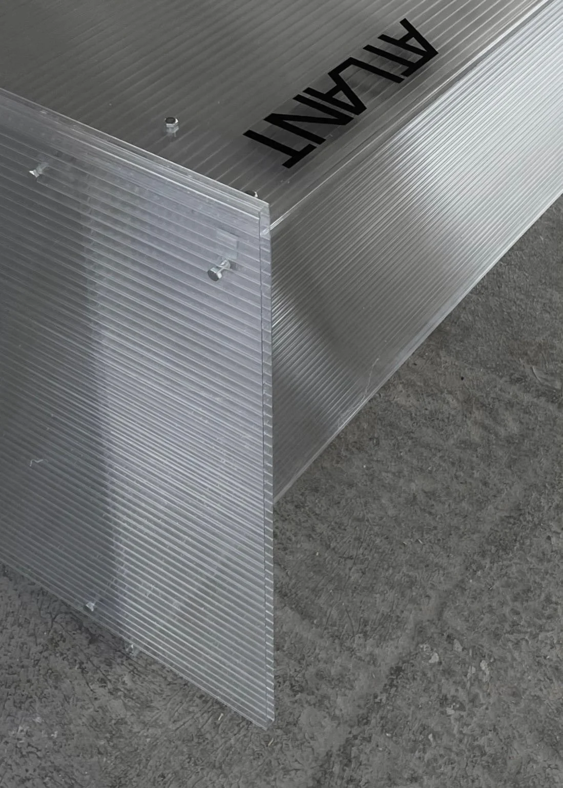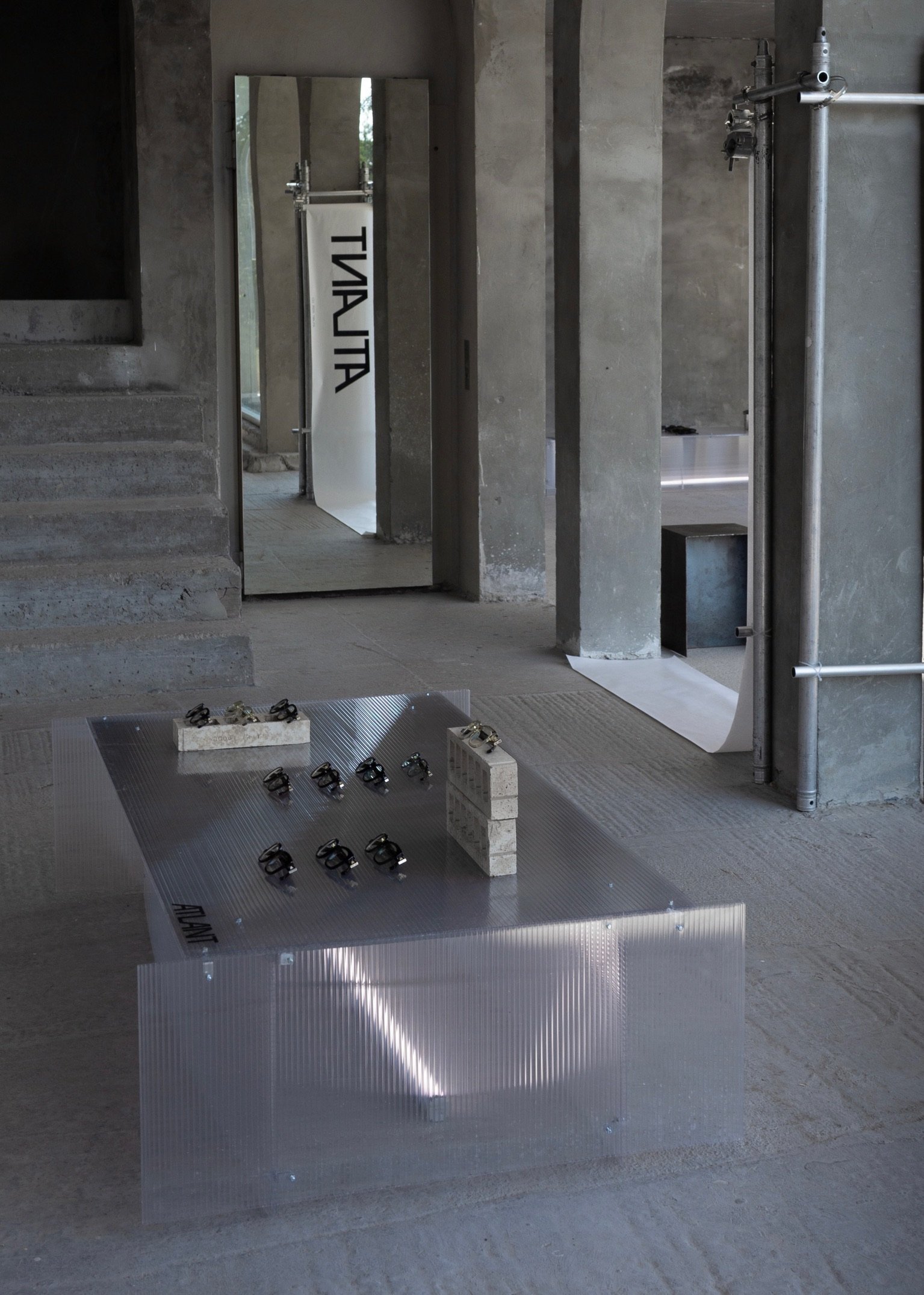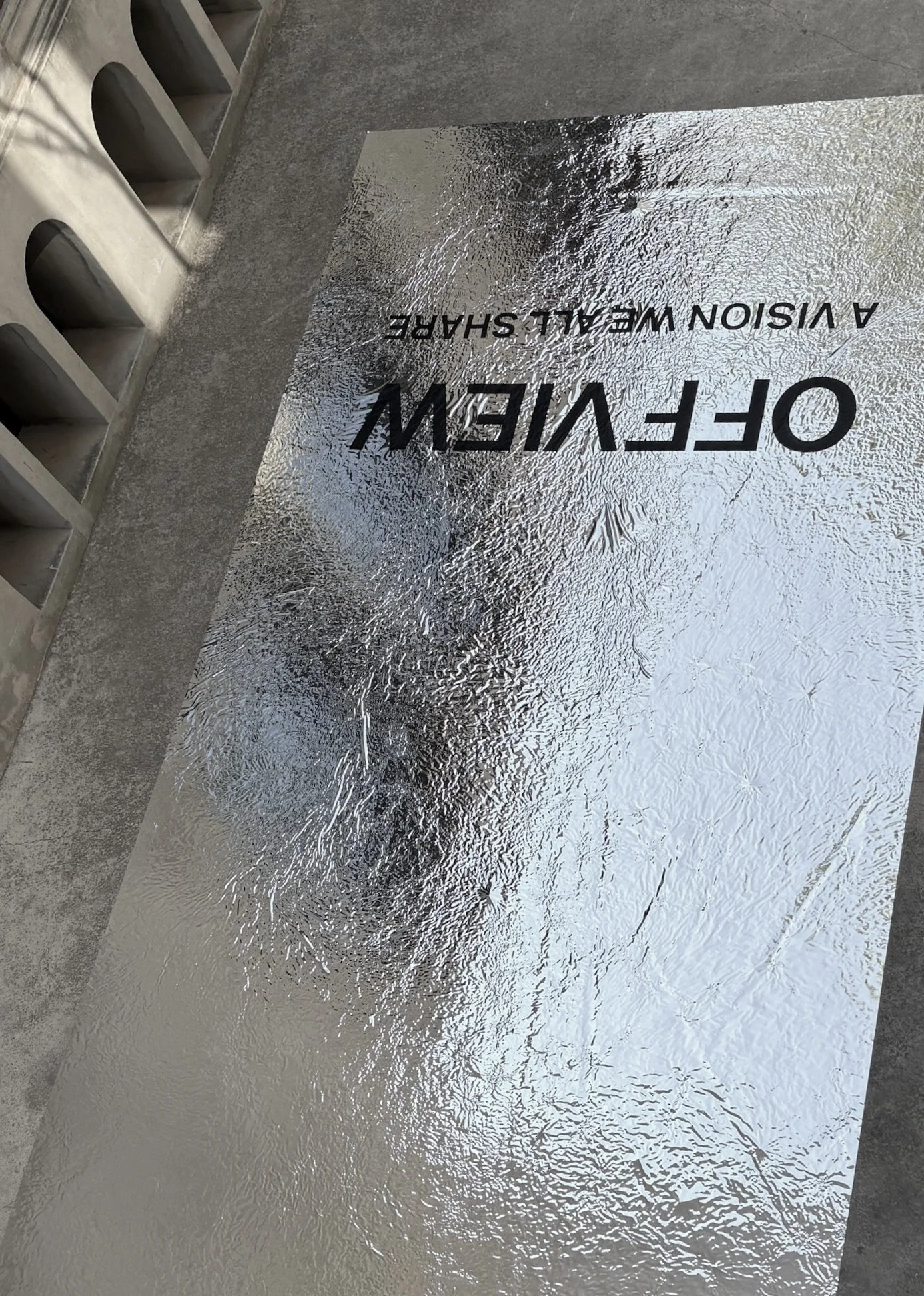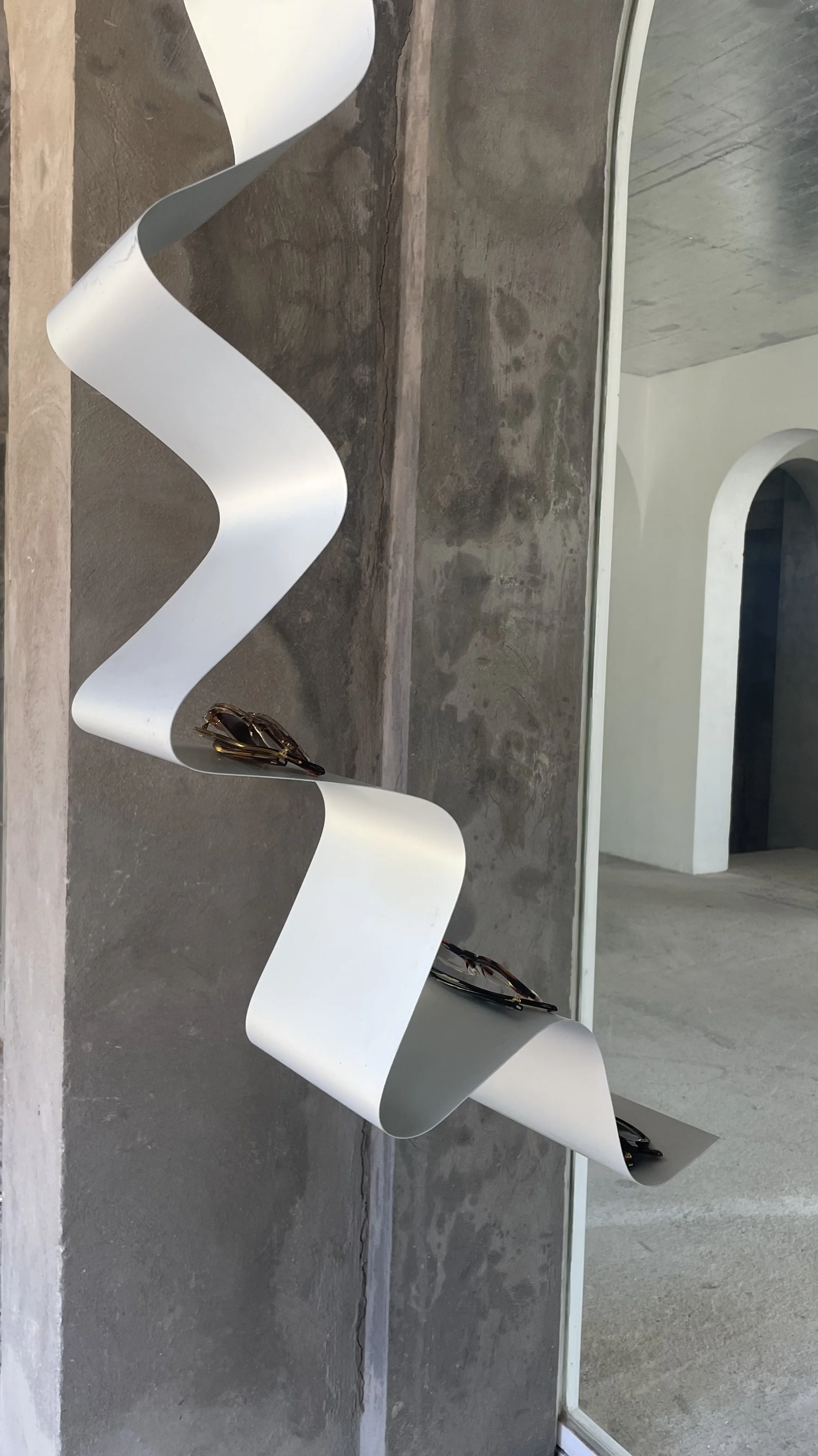 The installation spans four distinct areas of the site, each adapting to the spatial rhythm of its surroundings. Silver-toned volumes frame and elevate the eyewear collection by Gigi Studios and Atlant , offering moments of stillness and contrast within the complexity of the environment.