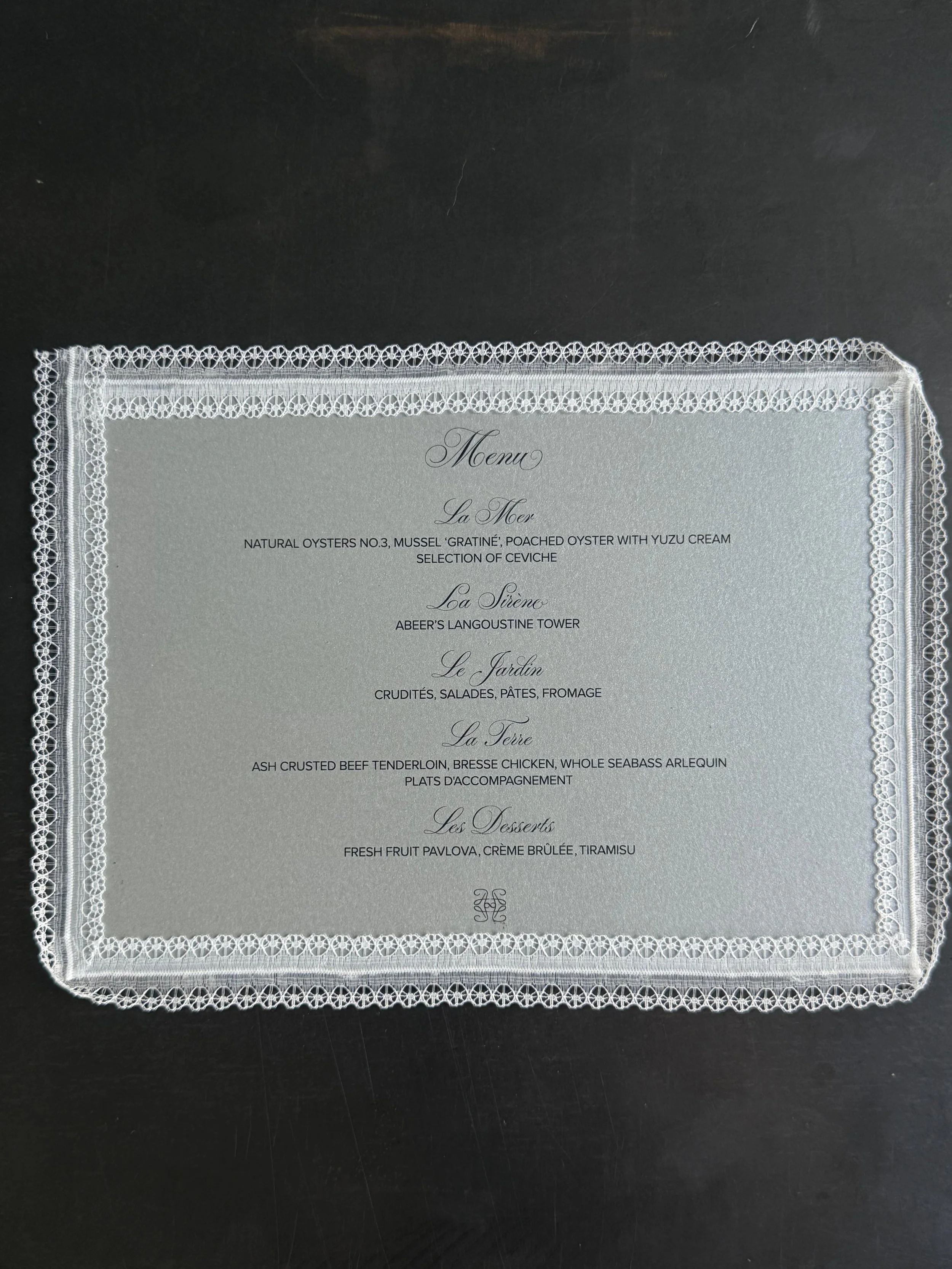 A custom-designed, 1-meter langoustine tower, developed with chef Mauro Colagreco, served as a sculptural centerpiece that seamlessly combined culinary artistry with design.