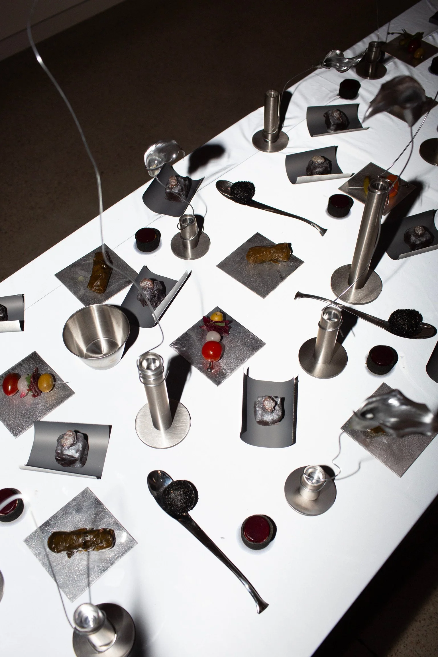 A custom culinary experience and event design for 21st.europe in their stunning minimalist Barcelona office. Rooted in the themes of future and innovation, the concept featured a 4-meter reflective silver table as the stage for an interactive dining experience.