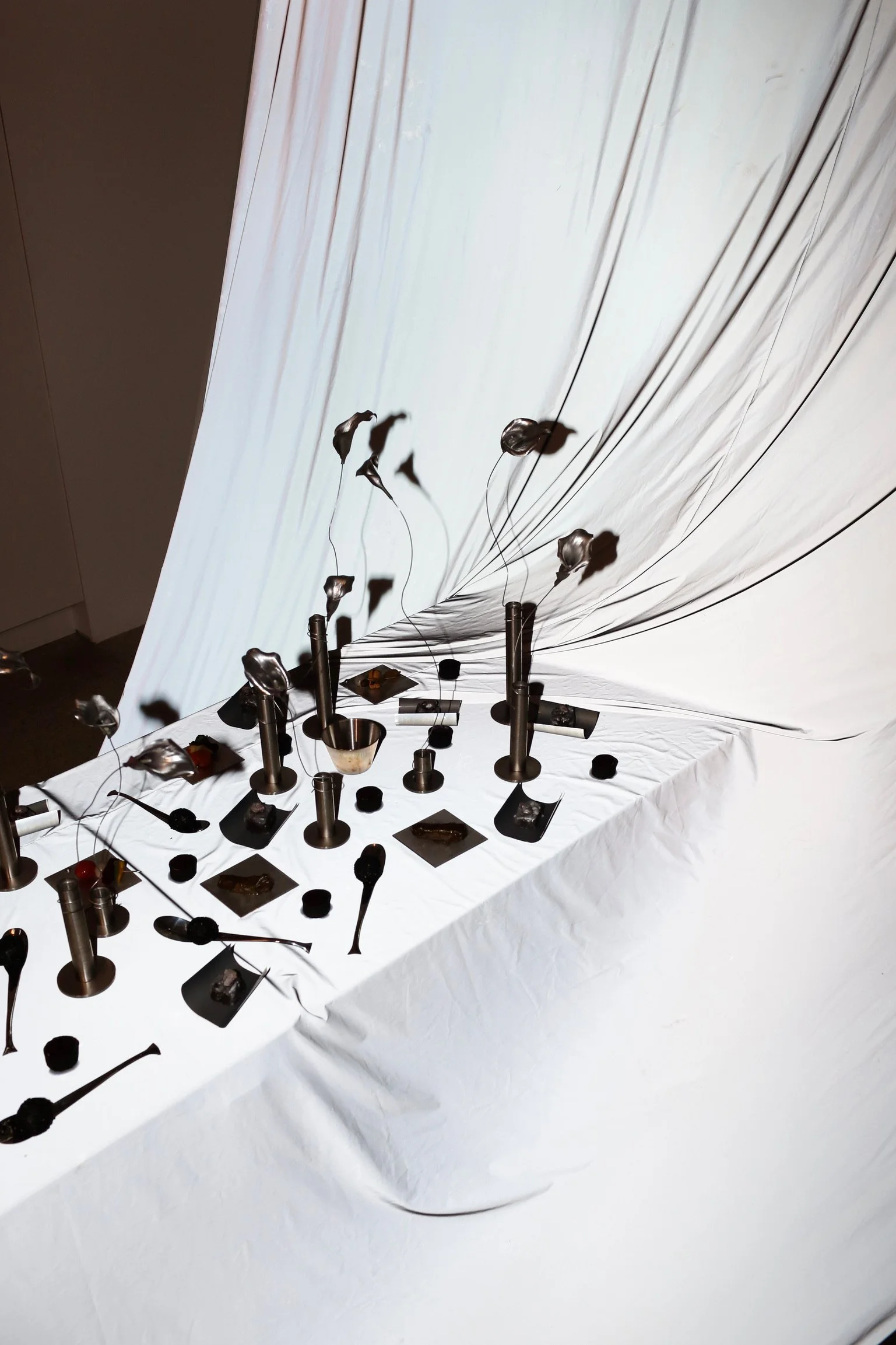 A minimalist menu, complemented by black focaccia mirroring the texture of stone, elevated Mediterranean dishes, and sculptural details, transformed the setting into an immersive, participatory environment for guests.